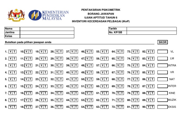 Ujian Psikometrik Tahun 6 Portal Rasmi Sk Haji Ismail